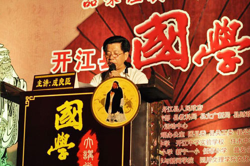 这次讲座是开江县弘扬国学的一个开端。接下来,开江县委宣传部、县文联拟将把国学讲座办成最富鲜活、最具生命力的公民道德教育平台,建成社会公德建设的一张名片,为开江的发展提供有力的道德支撑和优良的社会环境。目前,结合开江本土文学的国学教材已编写完成,来自县内外的“国学大使”将分赴机关、农村、校园全面展开宣讲。 (文/图 晏华 编辑/吴星辰)