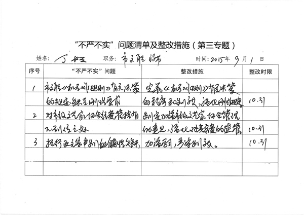 丁长兴“不严不实”问题清单及整改措施(第三专题)