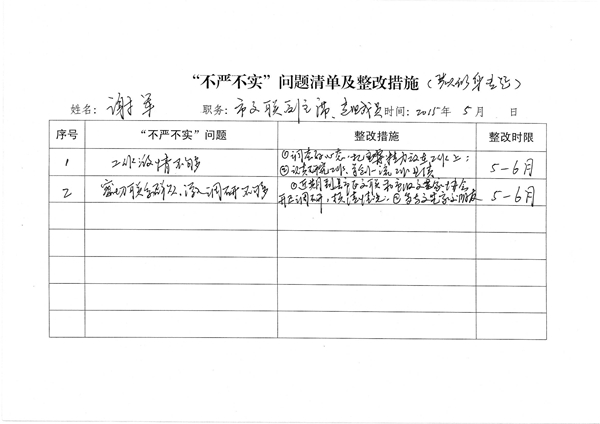 谢军“不严不实”问题清单及整改措施(第二专题)