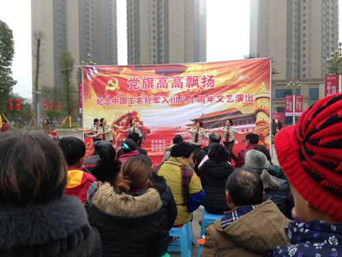 本网讯 为纪念红军入川80周年,2015年12月26日,由中共大竹县委宣传部、县文联主办,大竹县清平乐管乐学会承办的“党旗高高飘扬”文化惠民进社区活动来到竹阳街道办事处和平社区。县委宣传部副部长、县文联主席谢江带队参加了活动并致辞。