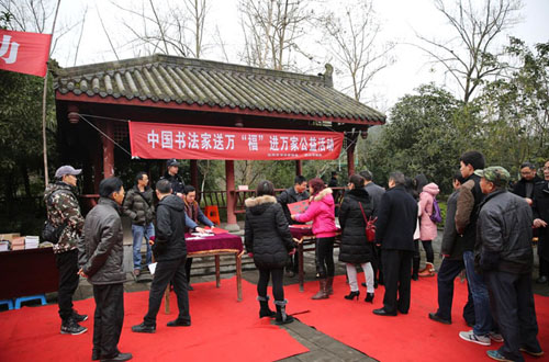 本网讯 在习近平总书记在文艺座谈会上的重要讲话精神和中共中央《关于繁荣发展社会主义文艺的意见》精神的指导下,为落实中国书法家协会“万名书法家送万‘福’进万家公益活动。2016年1月13日,达州市书法家协会、巴山书画院深入达川区百节镇新农村聚居点开展了中国书法家送万“福”进万家公益活动。