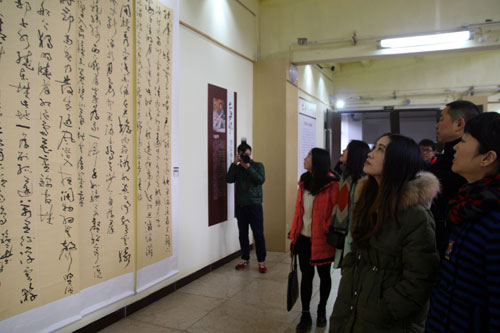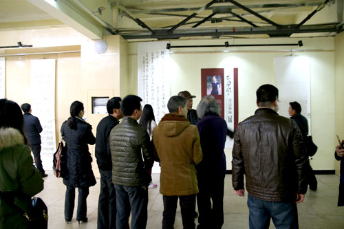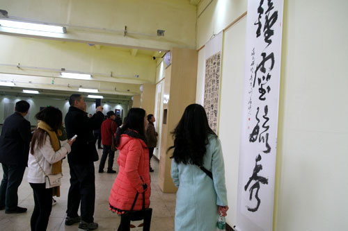开展仪式后,郭强和各位参展作者、各地书法爱好者一同仔细观看了展出的每件作品,并与作者进行现场交流沟通。