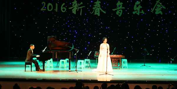 音乐会在气势磅礴的童声表演唱《少年中国龙》中拉开序幕。独唱曲目《望月》《杨白劳》《那就是我》《温柔春天》《一杯美酒》等,歌声悠扬,将艺术性和可听性完美结合,令人陶醉;民族器乐曲《战马奔腾》《双手开出幸福泉》《拔根芦柴花》《赛马》《战台风》或气势磅礴或婉转动听;钢琴独奏,贝多芬《热情》奏鸣曲和弦乐四重奏,莫扎特《C大调小夜曲》以演奏者精湛的技艺完美诠释了古典乐的美妙;《一把青铜锁》和《又见红杜鹃》是两首由本土作者创作的作品,歌者用乡音唱乡情,引起了观众的深切共鸣,音乐会在《为祖国干杯》欢快跃动的旋律中完美落幕。大家用流动的旋律冲刷去旧岁里的尘烟,用跃舞的节拍点缀起新春的祈愿。并传达了对2015年满怀收获的喜悦及对2016年充分期待的欢乐气氛。让在场的观众们跟随音符的节拍步入圣洁的艺术殿堂。