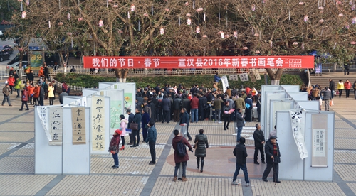 本网讯 2月18日(正月十一),中共宣汉县委宣传部、宣汉县文联在城区东门广场举行新春大型书画笔会。