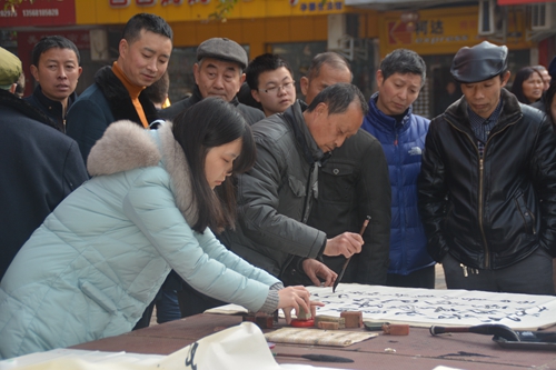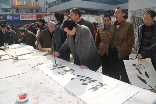 活动现场,围观的群众赞不绝口,在书画台前舍不得离开,主动为书画家们添墨展纸挂字画,请他们留下珍贵的墨宝。