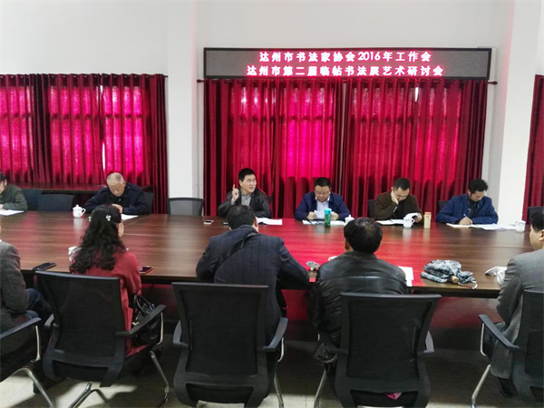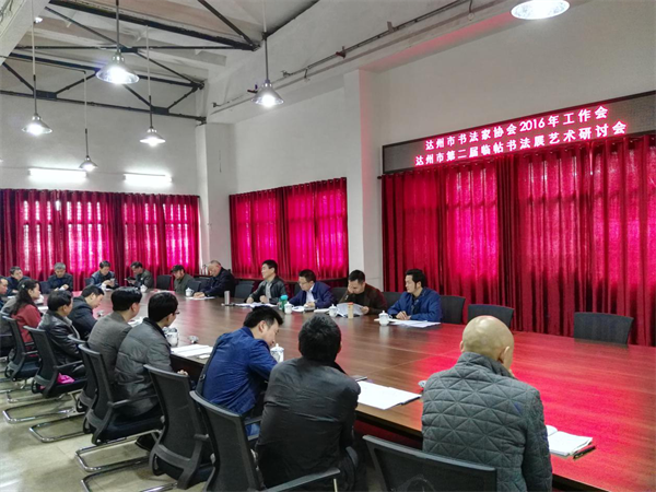本网讯 3月30日,达州市书法家协会在巴山书画院召开2016年工作会,并同时举办了达州市第二届临帖书法展及临帖书法艺术研讨会。市文联主席丁长兴,市文联调研员、市书协主席、巴山书画院院长马骏华,市文联组联部主任杜涛以及市书协在家副主席潘卫光、凌灿印出席会议。各县(市、区)书法家协会主席、秘书长以及部分重点作者等40余人参加了工作会。会议由马骏华同志主持。