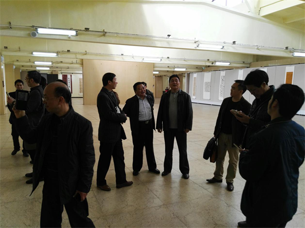 会前,丁长兴、马骏华与参会的代表一同参观了达州市第二届临帖书法展,并现场对入展作品进行点评。