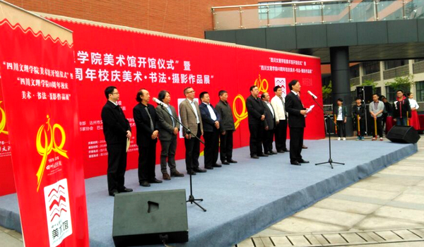 本网讯 4月27日上午,四川文理学院美术馆开馆仪式暨四川文理学院40周年校庆美术•书法•摄影作品展在莲湖校区艺术传媒大楼广场举行。四川文理学院党委书记王洪辉宣布开馆,校长王成端致辞。达州市委宣传部副部长、市文明办主任常荣,达州市文联主席丁长兴,巴山书画院院长、达州市书法家协会主席马骏华,达州市文联副主席、达州市美术家协会主席龙飞、达州市摄影家协会主席李开杰、学校党委副书记李佳国、侯忠明、副校长徐晓宗出席仪式,来自全国各地的艺术专家、校友亲临会场祝贺。