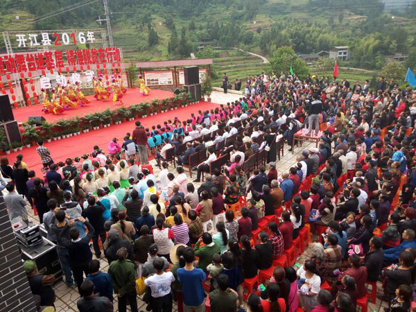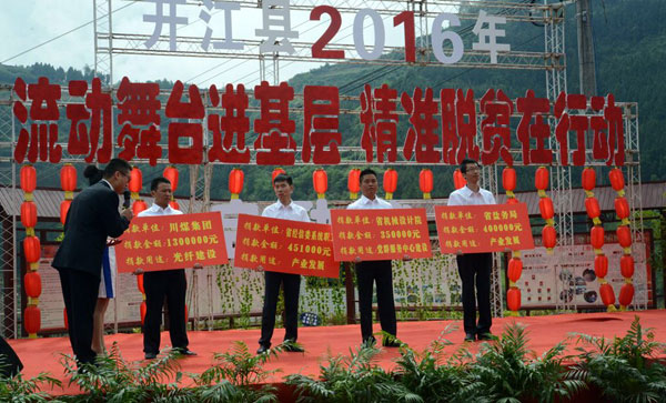 本网讯 为深入宣传精准扶贫的意义和相关政策,深入推进脱贫攻坚工作,丰富群众精神文化生活,激发干群共奔小康的工作热情,5月20日,由省经信委、中共开江县委、开江县人民政府主办,开江县委宣传部、开江县文联、开江县文广新局、宝石乡党委政府承办的“流动舞台进基层 精准脱贫在行动”启动仪式文艺演出在宝石乡程家沟村党群服务中心隆重举行。省经信委副巡视员鲁平成出席活动并讲话。县委副书记、县长李逢友宣布活动开幕。县委副书记郑学奇致辞。活动由县委常委、宣传部长黄龙德主持。