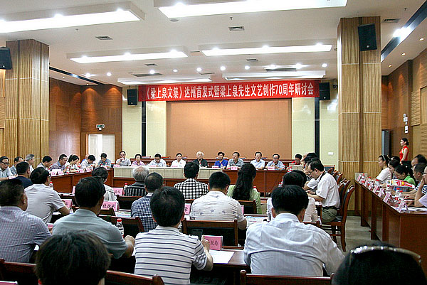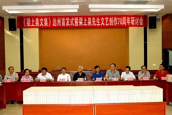 达州籍著名作家张建华、田雁宁,四川省诗词协会副主席、达州市诗词协会主席杜泽九,四川文艺评论家协会副秘书长、达州市文艺评论家协会主席范藻,达州市文联副主席、市作家协会主席邹亮,达州市民间文艺家协会主席、市文化馆馆长方江,四川文理学院文学与新闻学院院长杜松柏,达州市文艺评论家协会副主席兼秘书长廖清江,市诗词协会副主席朱景鹏,市作家协会副主席、市诗词协会副主席兼秘书长、市文化发展研究会常务副会长龚兢业等对梁老的艺术人生和文艺创作开展了热烈讨论,对先生的人品、艺品给予了高度评价。蒲心玉女士致答谢词。研讨会并提出了达州成立“梁上泉诗歌奖”的建议。
