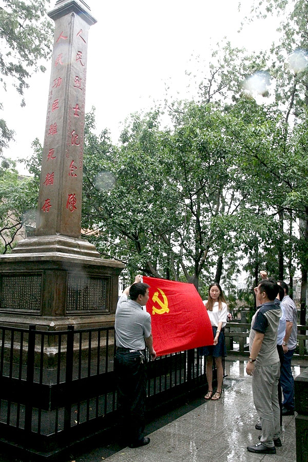 25日一早,市文联全体党员来到市人民公园烈士陵园,冒雨肃立人民英雄纪念碑前,丁长兴领誓,市文联全体党员向着党旗和人民英雄纪念碑重温了入党誓词。全体党员在缅怀革命先烈的同时接受了一次特殊的党性教育,进一步锤炼了党性。