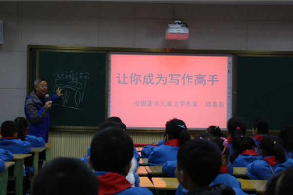 邱易东老师曾经在该校任教,他在教学之余致力于儿童文学创作,在少儿文学上有杰出成就和贡献,是继聂鲁达、金波之后中国著名的儿童文学作家,后被调入巴金文学院。现在他是国家一级作家、四川省特级教师。已创作出版《地球的孩子,早上好》等十多部著作。先后荣获“四川文学奖”“冰心儿童文学新作奖”“陈伯吹儿童文学优秀作品奖”“全国优秀少儿图书奖”“第三届全国优秀儿童文学奖”“第八届全国优秀儿童文学奖”等多种奖项,有多篇作品入选全国语文教材。邱易东老师始终忘不了在这里任教的岁月,始终忘不了家乡人民的深情友谊,愿将晚年的余热奉献给太平一小的孩子们。该校表示将以邱易东儿童文学创作培训基地建设为契机,每学期做好培训计划,邀请他回来授课培训并组建“少儿文学社”和“邱易东儿童文学图书专柜”,开展多种少儿文学创作活动,激发少儿们写作热情,创作出更多更好的儿童文学作品,让儿童文学创作培训基地盛开出美丽的文学之花,结出丰硕的果实。 (供稿/李寿东 编辑/吴星辰 邹靓)