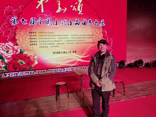 本网讯 11月4日至7日,初冬的北京。由中国文联,中国民间文艺家协会(戏曲专业委员会)主办的“中华颂”第七届全国小戏小品曲艺大展,在中央电视台梅地亚摄制中心落下帷幕。由市曲协会员、国家副高级演员赵宜炳同志编剧、导演,梁建军,孙伟,赵宜炳主演的小品《郭一刀》。经文本初赛,剧目光碟复赛,最终从全国选送的近千个作品中脱颖而出,入围北京总决赛。经过三天的激烈角逐,不负重望,一举揽获优秀组织奖,优秀剧目奖,优秀编剧奖,优秀导演奖,及三个优秀演员奖(最高奖)。系四川省唯一入围并获多项殊荣的优秀作品。