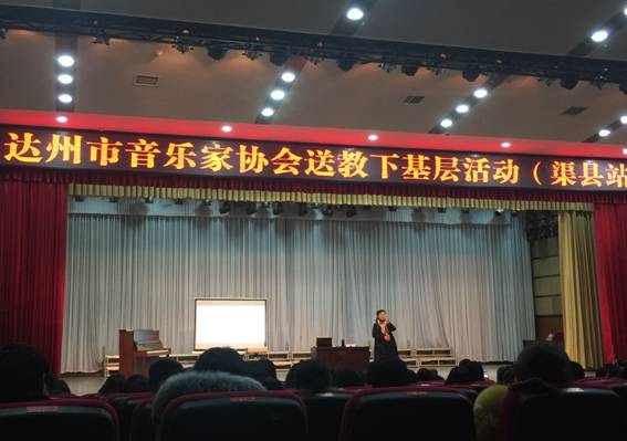 本网讯 12月15日,为积极贯彻落实习近平总书记在文艺座谈会上讲话精神以及在中国文联十大、中国作协九大开幕式上的重要讲话精神,市音协组织部分专家由赵英主席带队到渠县开展“送教下基层”活动。渠县教育局组织全县音乐教师近两百名参加了本次活动。