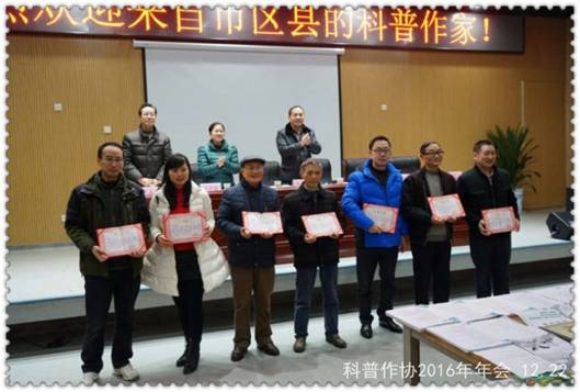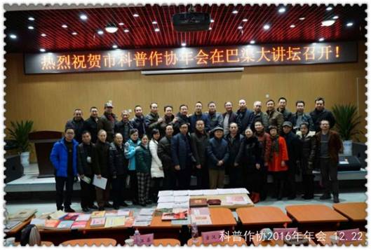 本网讯 12月22日,达州市科普作家协会2016年送旧迎新年会在达州图书馆召开。来自七县区市近50名会员代表与会,共庆2016年取得的不凡成绩,同迎2017年新年。主管部门市文联和市科协领导亲临会场看望全体科普作家并讲话。会议由协会副理事长李立东主持。