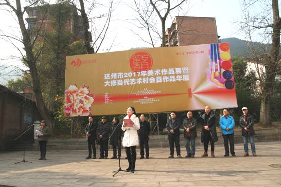 市文联副主席肖朝萍出席并讲话。市文体广电局副局长郑永富出席并宣布开展。通川区副区长庞福佑,市美协副主席刘承川、许华生、张全普,市美协秘书长曹文勇,大修当代艺术村副村长常咒、郭玉川,四川文理学院美术馆馆长邓旭等出席开幕式。市文联副主席、市美协主席、大修当代艺术村村长龙飞主持开展仪式、介绍筹展情况并致辞。