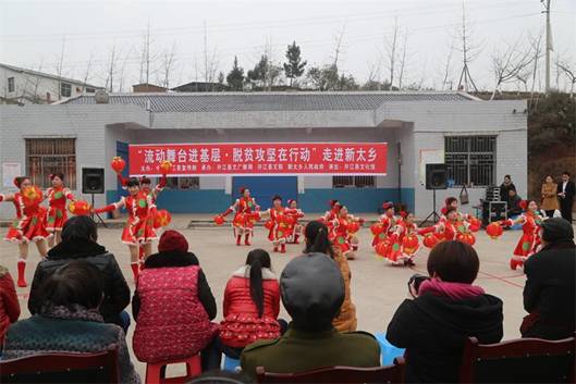 本网讯 1月17日,由中共开江县委宣传部主办,县文联、县文广新局、县文化馆承办的“流动舞台进基层.脱贫攻坚在行动”惠民演出,先后在宝石、骑龙、甘棠、广福、新太等乡镇的贫困村举行,为当地老百姓送去了一场场文化大餐。