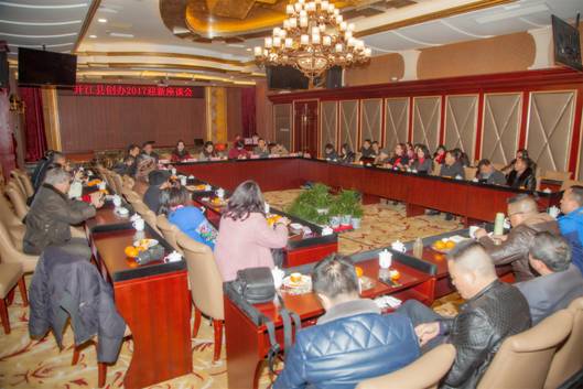 本网讯 继全县宣传思想暨文艺工作座谈会后,县创办于1月22日在飞云宾馆举行“开江县2017文艺创作迎新座谈会”。中共开江县委宣传部副部长、文联主席陈俐静,县文广新局党组书记、局长蒋兴芬,县创办主任朱映铮出席了会议,各文艺协会负责人、文艺创作人近百人齐聚一堂,共享冬日暖阳,同话文艺春天。