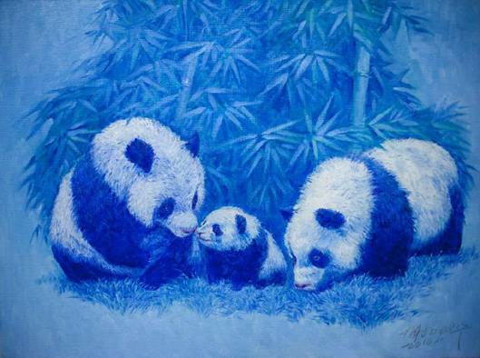 谢纲骅上世纪80年代毕业于四川美术学院油画专业,系中国美术家协会四川分会会员。1980年以来先后有100多件作品参加国家、四川省美术作品展览,曾10多次荣获国家、四川省优秀作品奖。近年来,作为大熊猫故乡的画家,谢纲骅把创作的视线聚焦于大熊猫。他的作品《青花瓷·伊甸园》系列,运用中国最传统的青花瓷色调,结合西方最经典的伊甸园传说,描绘大熊猫一家其乐融融的生活。既有典型的中国艺术语言,描绘的大熊猫又是广受世界人民喜爱的中国元素,所以,他的作品在欧洲得到不少旅欧华人和外国藏家的喜爱。
