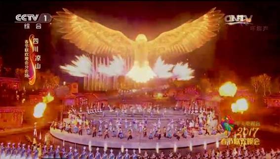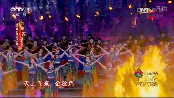 红火的火把舞起来,动人的旋律唱起来,迷人的舞姿跳起来。鸡年的春晚,仍然将“东西南北中、全民大联欢”作为创作基调,为全国人民奉上最精彩的演出。作为2017年央视春节晚会四个分会场之一,西昌分会场由恢弘的气势,富有“火”元素的彝族民俗艺术形式组成,展现彝族人民热爱生活、喜迎新年的热闹景象。