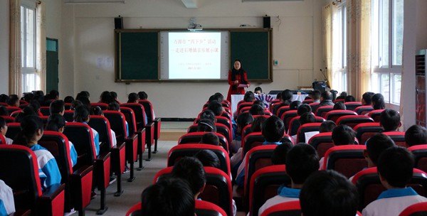 本网讯 3月13日,为了深入贯彻习近平总书记在文艺工作座谈会上的讲话精神,进一步落实市委市政府关于《文艺工作者下基层体验生活和下基层普及文艺知识》的“双下”文件精神,达州市文联、达州市音乐家协会“我们的中国梦·文艺进万家”——送教下基层活动在万源市石塘学校举行,达州市音协会员张明书在石塘学校大会议室为初一年级的学生们带去了生动的一堂音乐课。