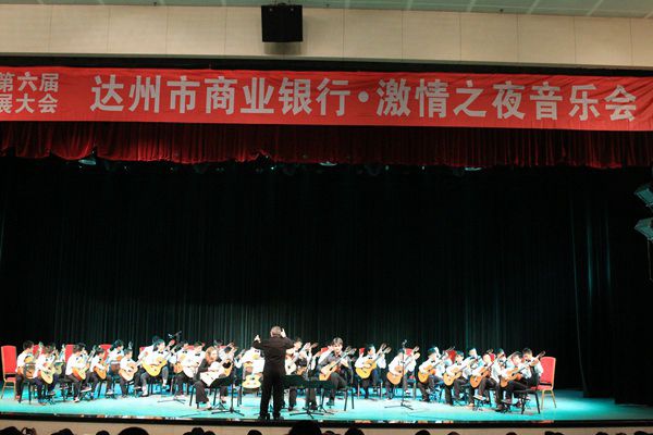 本网讯 4月16日晚,由西班牙国际吉他艺术协会、达州市商业银行、四川文理学院、达州市音乐家协会吉他专业委员会联合主办,由达州市森林吉他艺术学校、创丰汇、达州四海旅行社共同承办的达州市商业银行·激情之夜吉他音乐会暨西班牙阿尼朵吉他四重奏音乐会在达州市中心广场演绎大厅激情奏响。
