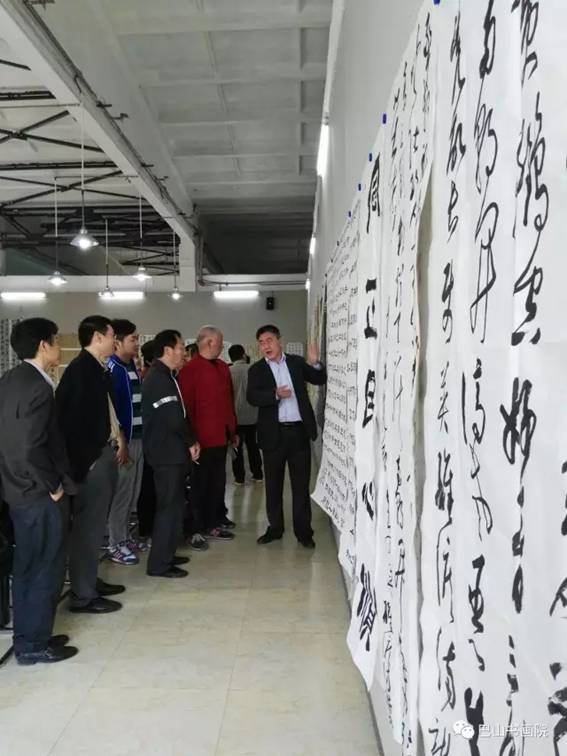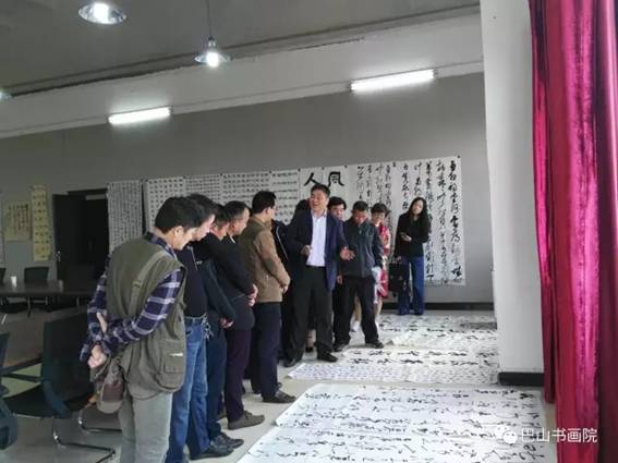 活动现场,整个艺术交流中心的墙面上、地板上都铺满了作品,场面蔚为壮观。马骏华对所有作品进行了逐一点评,向作者提出了作品的亮点在哪儿,不足在哪儿,就作品的创作形式、章法、结构、错别字等方面提出针对性意见,举例贴切,生动有趣。同时,马骏华还与作者分享、交流评选以及当代书法审美取向等方面经验。与会作者们畅所欲言、交流切磋、学习,气氛融洽,取得了较好地看稿效果。