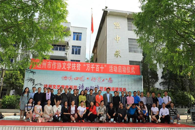 本网讯 4月22日,由达州市作协、开江县作协主办,开江县八庙镇党委政府协办,在镇初级中学举行了达州文艺家走基层诗歌诵读暨全民阅读活动。达州市文联副主席市作家协会主席邹亮、达州市作家协会副主席四川文理学院教授成良臣、达州市文艺评论家协会副主席达州职业技术学院教授钟钦、达州市作协诗歌专委会主任达川区作协副主席符纯云、达州网络作家专委会主任张艇舰、达州市作协信息办主任曹文润、大竹县作协副主席冯晓澜、开江县文联副主席梁棹历女士、开江县教科局副局长肖时海,和来自达川作协、大竹作协、开江作协的文朋诗友及八庙镇党委政府领导、八庙初级中学的师生,共500多人参加了此项活动。