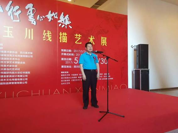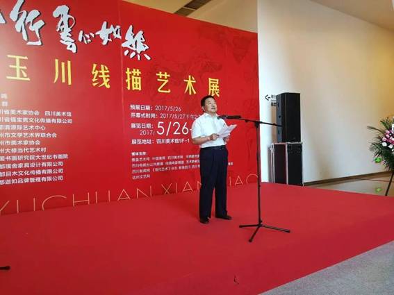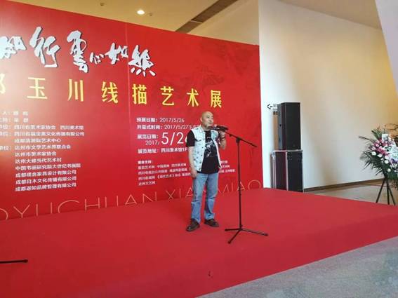 本网讯 2017年5月27日下午15:00,线如行云心如丝——郭玉川线描艺术展在四川美术馆隆重开幕。本次展览由四川省美术家协会、四川美术馆主办,四川省福宝斋文化传播有限公司、成都清源际艺术中心承办,达州市文学艺术界联合会、达州市美术家协会、达州大修当代艺术村、中国书画研究院大世纪书画院、成都璞舍家具设计有限公司、成都目木文化传播有限公司协办。