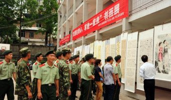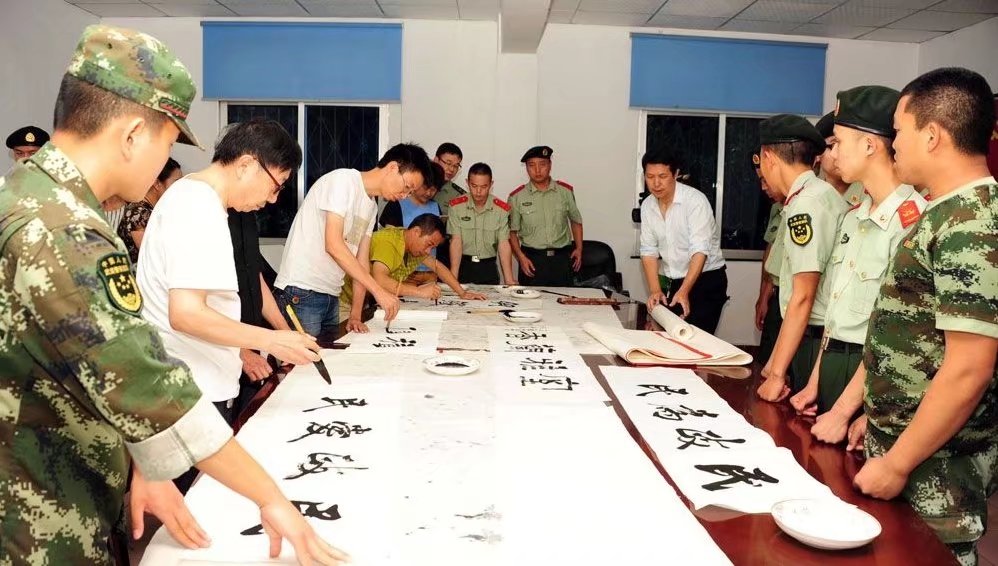 开江县“书画进军营”走进开江武警中队
