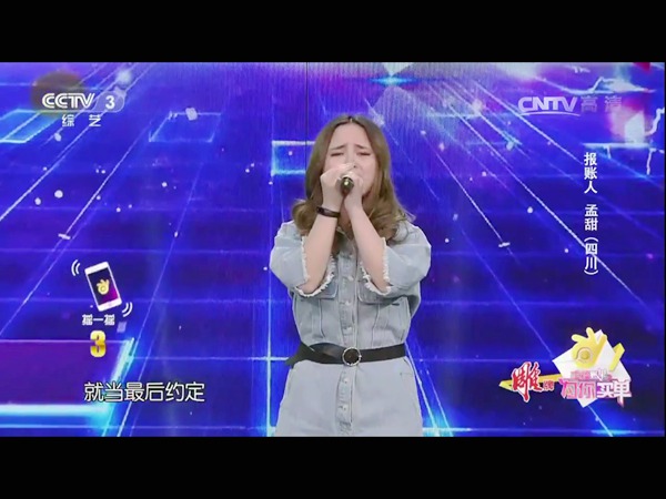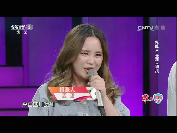 据了解,孟甜在2016年11月参加了cctv《幸福账单》的地面选拔,获第二名,于2017年5月3日前往北京中央电视台录制《幸福帐单》。该期节目在2017年7月11日在央视CCTV3频道播出,她在节目中演唱了《听海》和《忽然之间》两首流行歌曲。