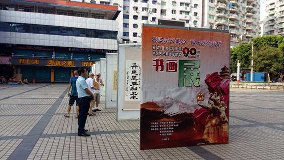 本网讯 近日,宣汉县以“喜迎历史盛会.军民同心筑梦”为主题的庆祝中国人民解放军建军90周年书画展在县城东门广场成功举办。本次活动由县委宣传部主办,县文联承办,县美术家协会、县书法家协会和县书画院协办。