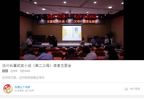 本网讯 9月11日,长篇纪实小说《第二父母》读者见面会在达州市图书馆巴渠讲坛成功举办。活动由达州市文联、达州市科协主办,达州市科普作家协会、达州市文艺评论家协会、达州市图书馆承办。