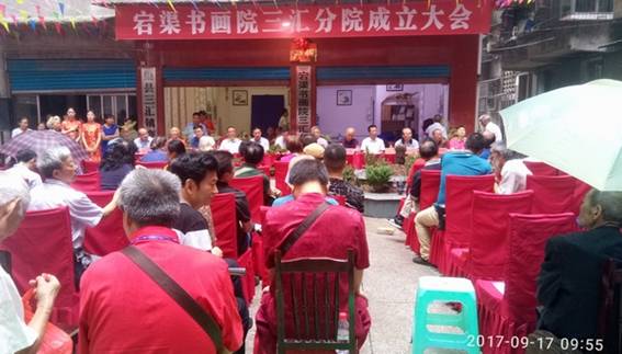 【本网讯】9月17日,宕渠书画院三汇分院在三汇镇后街影剧院成立。“宕渠四子”杨牧(全国著名诗人、中国诗歌协会副主席、宕渠书画院首席名誉院长、四川作协副主席)、李学明(原四川省委统战部副部长、四川省社会主义学院院长、党委书记、邓小平理论研究专家)受邀专程回到家乡渠县,为宕渠书画院三汇分院成立揭牌。