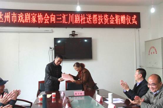 王兴对达州市戏剧家协会艺术家们不辞辛劳亲临三汇指导文化工作和给予的捐助表示衷心感谢!他说,艺术家们为振兴古老的川剧艺术鼓与呼,为我们传承本土历史文化增添了信心,鼓励大家要把这门艺术继任下来,传承下去,让他焕发勃勃生机。