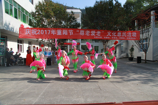 【本网讯】2017年10月27日下午,久雨的大巴山难得的艳阳高照,万源市图书馆、市舞协、音协、剧协、舞台美术协会在万源市中心敬老院开展了一场义务惠民演出和赠书活动。