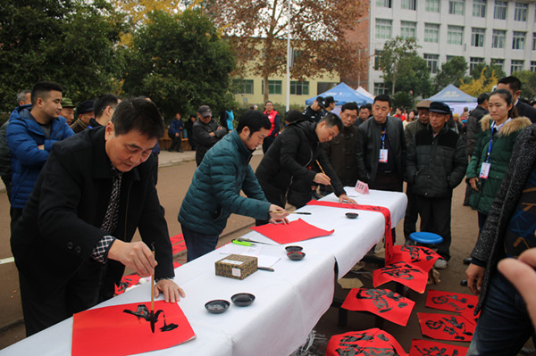 舞台下,由市文联副主席肖朝萍带队的文联工作人员为当地人民群众发放了200多本《巴山文艺》,马骏华、凌灿印、李松远等书法家们挥毫泼墨,将寓意美好的“福”字与春联赠送给当地群众,百姓们纷纷围观、热情高涨,对文艺家和文艺工作者们表达了深深的谢意。