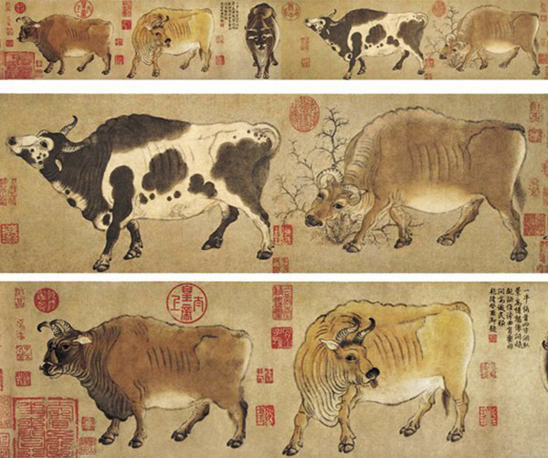 唐代韩滉的《五牛图》被誉为中国十大传世名画,是有史可考最早画于纸本上的绘画作品。