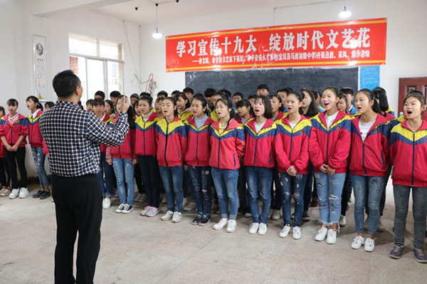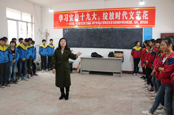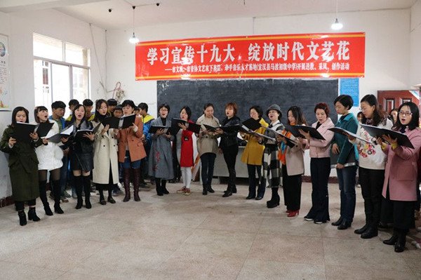 【本网讯】11月17日,达州市文联副主席、达州市音乐家协会主席、四川文理学院音乐与演艺学院教授赵英带领我市高校音乐教师及本地知名文艺工作者来到宣汉县马渡关镇开展以“学习宣传十九大 绽放时代文艺花”为主题的市文联、市音协文艺家下基层,牵手音乐人才基地(宣汉县马渡初级中学)开展送教、采风以及创作活动。