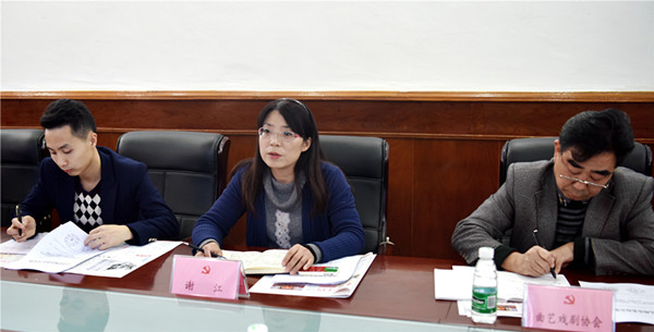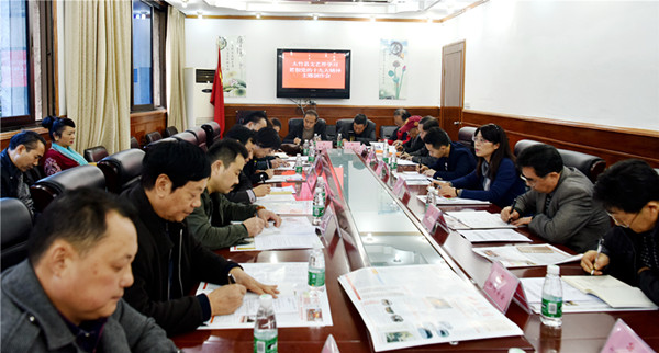 谢江还对大竹县文艺界学习贯彻党的十九大精神提出了四点要求:1、深入学习,读懂悟透。一要全面学习,深刻领会,掌握十九大精神的深刻内涵;二要吃透重点,层层传达,掀起热潮,重点学习与文化相关的论述和要求。2、围绕主题,抓好创作。号召广大文艺工作者结合自己所属的艺术门类和特长专长,围绕十九大精神这个主题进行文艺创作,用文艺的形式解读十九大,宣传十九大。3、创新载体,寓教于乐。一是精心组织“宣传十九大·文化进万家”为主题的百场文化下乡活动;二是精心筹备一台以“德善至上·感恩奋进”为主题的道德模范和各类先进典型集中颁奖晚会;三是精心打造一个反映大竹县易地扶贫搬迁工作成效的情景剧《川东婚嫁》,力争在达州市元旦文艺晚会精彩亮相;四是精心编辑出版一套《戏曲撷英》集中展示在十九大精神的指引下,大竹戏剧曲艺方面的创作成果;五是精心策划在《大竹文化》《幸福大竹》《大竹诗词》《竹海艺坛》等本土刊物和网络平台开辟专栏专版,择优刊登反映十九大精神的我县原创优秀文艺作品;六是精心准备元旦春节的系列群众文化活动,通过丰富多彩的文化活动,宣传十九大精神。4、不辱使命,再攀新高。各文艺协会要对照年初目标计划,认真梳理全年工作情况,查漏补缺,客观总结,迎接年终考核;及早谋划来年工作,按照十九大精神要求,坚定文化自信,推动社会主义文化繁荣兴盛,为全国文化先进县再添光彩。