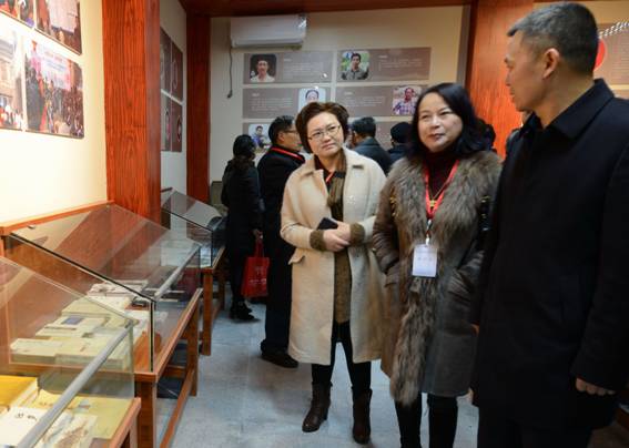 达州市文联主席吴洁如(左一)在陈列馆探讨诗歌艺术
