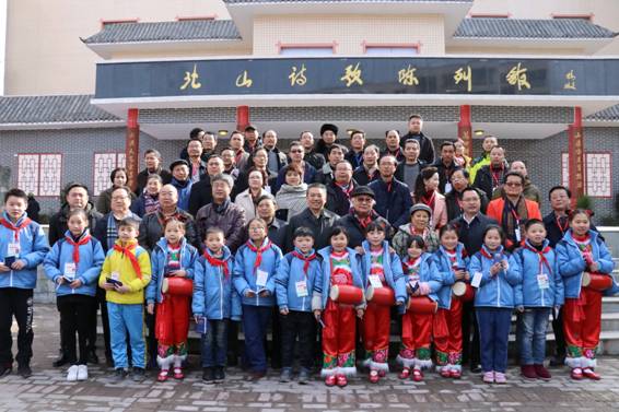 与会领导、嘉宾和北山中心校山泉文学社同学合影