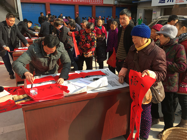 “以前,在我们小的时候每到过年,我们都拿着红纸请村里面最有文化的,字写得最好的教书先生写春联,现在没想到我几十岁了还能在2018年拿到书法家亲手的写得春联,这个春节一定更加红火!”一位村民说道。“我希望书法家们能够每年都来,我一定早早就来排队。”