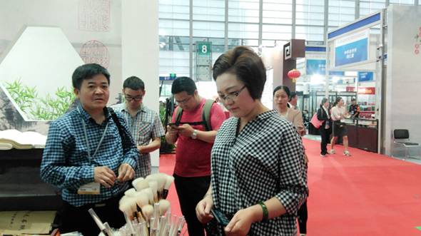 图:达州市文联主席吴洁如在考察文房四宝和书画产业