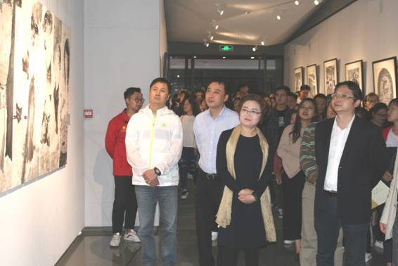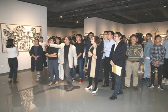图:与会嘉宾和艺术家参观绘画艺术作品