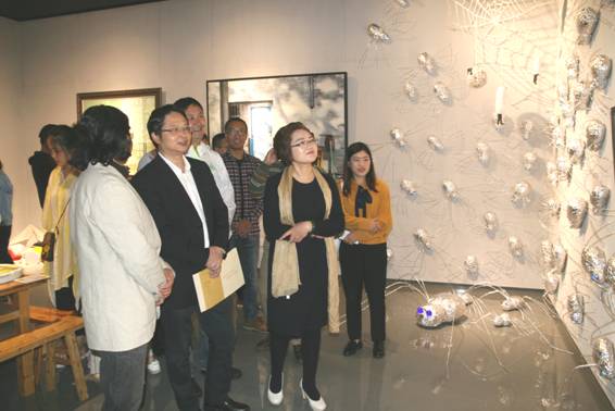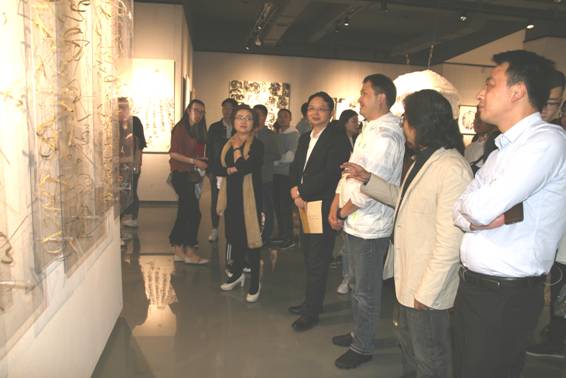 图:与会嘉宾和艺术家参观装置艺术作品