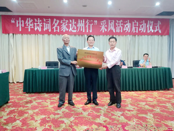 市人大常委会主任胥健在活动启动仪式上致词并向此次采风团授旗,中华诗词学会常务副会长、《中华诗词》杂志社社长范诗银出席仪式并讲话,市委常委、宣传部长邓瑜华主持启动仪式。四川省诗词协会授予巴山文学院为诗词创作基地。举行“中华诗词名家达州行”采风活动,是以传统诗词艺术形式为手段,以文学采风、创作、展示为载体,弘扬中华优秀传统文化,进一步增强文化自信。