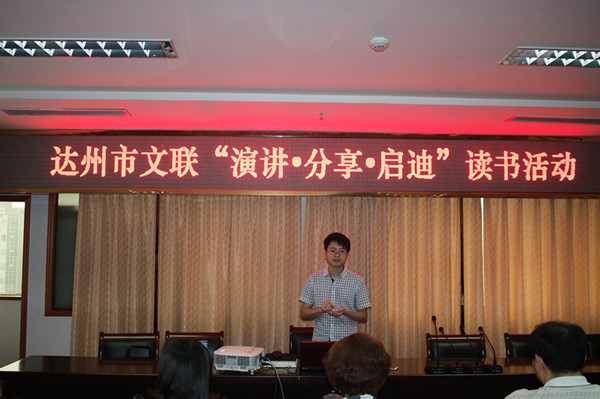 【本网讯】6月20日,达州市文联开展第五期“演讲·分享·启迪”主题读书活动。市文联曹思危同志以《漫谈蒋经国》为题目,和大家分享了蒋经国这位在近现代中国有一定影响的历史人物的故事。市文联主席吴洁如、副主席兼秘书长谢军出席活动并分别对此次读书活动作了精彩点评,副主席肖朝萍主持本期活动。此次读书活动也是达州市文联开展“大学习 大讨论 大调研”活动的一项重要举措和抓手。