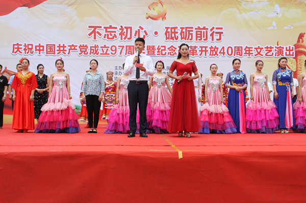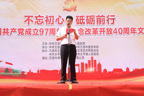 【本网讯】为庆祝建党97周年,大力宣传习近平新时代中国特色社会主义思想,弘扬社会主义核心价值观,6月29日,万源市举行“不忘初心 砥砺前行”建党97周年文艺演出活动。万源市市委副书记李文章出席活动并致辞。万源市市委常委、宣传部部长杨明军,副市长陈守英出席活动。