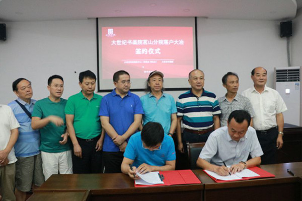 当天,大世纪书画院还与大冶市政府政务服务中心(项目办、优化办)签订了大世纪书画院茗山分院落户大冶战略合作协议。